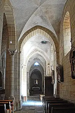 In den Seitenschiffen stehen den im Querschnitt rechteckigen Pfeilervorlagen auf den Außenwänden entsprechende Wandvorlagen gegenüber, mit gleichen Kämpfern und hohen Sockelerweiterungen. Auf ihnen ruhen angespitzte scharfkantige Gurtbögen. Die rechteckigen Gewölbefelder werden von Kreuzgratgewölben überdeckt, deren Zwickel ein kurzes Stück über und parallel zu den Laibungen der Arkadenbögen der Scheidewände und der Gurtbögen gegen die umgebenden Bauteile stoßen.