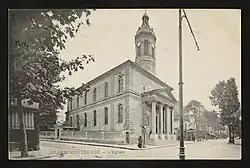 An der Stelle des heutigen Vorplatzes wurde im 14. Jahrhundert die erste Kirche des heiligen Jakobus des Älteren erbaut, im 15. Jahrhundert erweitert und im 16. Jahrhundert und Anfang des 19. Jahrhunderts zweimal umgebaut.[3] Das Kirchengebäude war seit dem Konkordat von 1801 im Besitz der Gemeinde. Das Gesetz zur Trennung von Kirche und Staat von 1905 änderte nichts an dieser Zugehörigkeit. Im Jahr 1932 beschloss die Stadtverwaltung, die Avenue de la République und die Grande Rue (heute Rue Gabriel Péri)[4] zu verbreitern. Die Kirche musste deshalb verlegt werden. Der Stadt oblag als Eigentümerin des Gebäudes die Verpflichtung zum Neubau und zur Instandhaltung. Mit dem folgenden Kirchenneubau wurde eine der ersten Betonkirchen Frankreichs errichtet.[1]