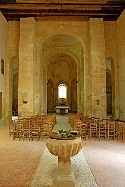 Noch in der frühromanischen Epoche des 10. Jahrhunderts wurde das Hauptschiff ohne Steinwölbung errichtet.