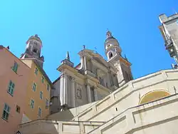 Die Basilika St-Michel-Archange ist eine römisch-katholische Kirche im historischen Zentrum von Menton an der Côte d’Azur, gelegen in der französischen Region Provence-Alpes-Côte d’Azur. Die dem Erzengel Michael gewidmete Pfarrkirche des Bistums Nizza hat den Rang einer Basilica minor.[1] Die im 17. Jahrhundert errichtete Kirche ist ein hervorragendes Beispiel für die barocke Architektur der Stadt und ist vom Meer aus über eine Treppe zu erreichen, die auf einen eleganten Platz mit Blick auf die darunter liegende Landschaft und Risseu-Verzierungen im Pflaster führt. Mit ihrem 53 Meter hohen Glockenturm ist sie für diejenigen, die vom Meer aus kommen, ein zentraler Punkt im Stadtbild. Seit 1947 steht die Basilika mit dem Friedhof unter Denkmalschutz.[2]