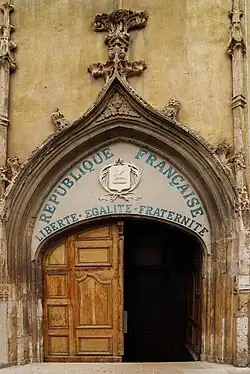 Die Kirche wurde von 1489 bis 1503 im gotischen Stil erbaut und 1499 zur Stiftskirche erhoben, da das von der Abtei Lérins abhängige benachbarte Kloster Valmoissine[2] an die Kirche wechselte. Seit 1905 (und dem Gesetz zur Trennung von Kirche und Staat) trägt das Kirchenportal im Tympanon die Inschrift "République Française. Liberté Égalité Fraternité", was in Frankreich einmalig ist.