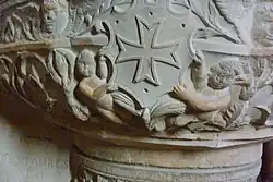 - Der Taufstein stammt von 1527. Er ist mit Engelsköpfen und Arabesken verziert.