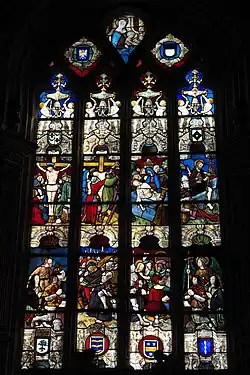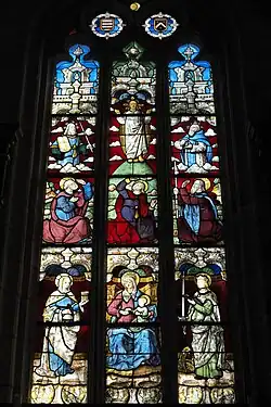 Die Scheiben des dreibahnigen Fensters wurden um 1525/30 geschaffen. In der Mitte ist der heilige Sebastian dargestellt, seitlich sieht man einen Ritter mit seinem Schutzpatron, einem Bischof, und eine Stifterin mit Maria Magdalena.