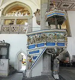 Kanzel von 1608 mit Blick zur Fürstenempore