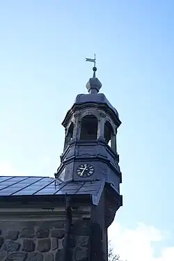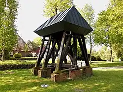 Die Kirche hat einen freistehenden Glockenstapel mit zwei Glocken.