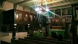 Der Altar der Kirche stammt aus dem 17. Jahrhundert.[1] Er ist mit Figuren von Petrus und Johannes vom Anfang des 14. Jahrhunderts versehen. An der Empore befinden sich bemalte Füllungen als Reste von Ständen der Zünfte 1598–1778. Die Kanzel hat ein Baldachin. Sie trägt die Inschrift „Ecce homo“ und ist mit einem Portrait Martin Luthers versehen.