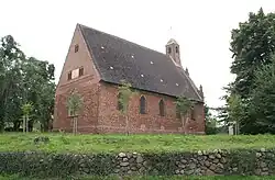 Die den Friedhof um die Kapelle begrenzende Packsteinmauer aus Feldstein ist in Resten erhalten. Im Norden und Süden befinden sich zwei rundbogige Friedhofstore aus Backstein, die von Strebepfeilern gestützt werden.