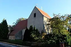 Das flachgedeckte Kirchenschiff ist in seinem Kern ein spätgotischer Saalbau mit dreiseitigem Ostschluss aus Backstein. An den Innenseiten befinden sich im Norden und Westen Emporen.[5][6] Das Schiff und die mit einem Tonnengewölbe versehene sogenannte „alte Sakristei“ sollen jedoch schon um etwa 1450 unter Verwendung von Steinen der 1442 zerstörten Würdenhainer Burg entstanden sein.[7][8]
