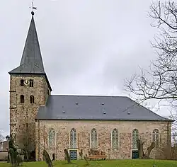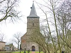 - Historischer Friedhof: Er dient seit 1882 nicht mehr als Begräbnisplatz der Gemeinde. 70 Grabsteine aus der Zeit zwischen 1570 und dem Beginn des 20. Jahrhunderts sind erhalten, der älteste – eine Gruftplatte – befindet sich links neben dem Eingangsportal der Kirche. Die Grabsteine von Anna Elisabeth und Friedrich von der Borch (1640–1705) befinden sich an der Südseite des Turmes.[7]
