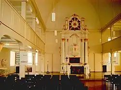 Die Ausstattung bestand anfangs aus dem barocken Kanzelaltar aus der Werkstatt des Hofbildhauers Johann Friedrich Blasius Ziesenis,[9] dem aus der alten Kirche geborgenen Taufstein, den Emporen und dem Kirchengestühl.[4]