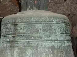 | 2 | Johannes | 1090 | 820 | f1 +10 | (lateinische Inschrift) Johannes ist mein Name. Mein Geläute soll Gott wohl gefallen. Die Lebenden rufe ich, den Toten läute ich. Antonius van Utrecht hat mich gemacht. 1550 | |||