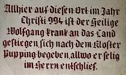 Im Jahr 994 begab sich Bischof Wolfgang von Regensburg auf eine Visitationsreise, die ihn zu den Regensburger Besitzungen in Österreich bringen sollte. Mit einem Schiff von Passau kommend, fühlte der schwerkranke Bischof sein Lebensende nahen. Er verließ das Schiff und ließ sich in die St.-Othmar-Kapelle nach Pupping bringen, wo er am 31. Oktober im Alter von 70 Jahren verstarb.