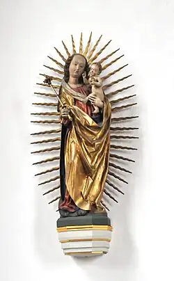 Eine der bedeutendsten Statuen in der Kirche ist die der Heiligen Maria, der Himmelskönigin. Die Statue ist eine barocke Holzfigur aus der Zeit um 1725. Sie war ursprünglich auf einem Holzgestell angebracht und wurde bei Prozessionen von den Gläubigen getragen. Die Statue soll der Schule des Tilman Riemenschneider entstammen. Heute schmückt sie die nördliche Emporenwand beim Taufbecken.