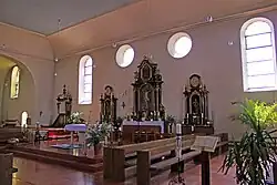 Ebenfalls aus der Mitte des 18. Jahrhunderts stammen die original erhaltenen beiden Seitenaltäre und die Kanzel des Bildschnitzers Klesen (Scheuern)[3].