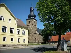 Die heutige, mit einem schiefergedeckten Satteldach bedeckte Saalkirche und der mit einer Haube versehene Kirchturm im Westen wurden 1724–1728 aus Bruchsteinen gebaut. Der eingezogene, frühgotische, rechteckige Chor des Vorgängerbaus blieb erhalten.