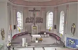 Im Chorraum befinden sich drei Bleiglasfenster, die im Januar 1951 von der Firma Binsfeld-Dornoff, (Trier), eingebaut wurden.[4]
