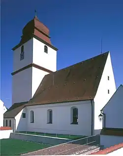 Ein Schlussstein im Chorgewölbe des Turmes nennt das Erbauungsjahr der Kirche: 1420. Aus dieser Zeit stammt der rechteckige, mächtige Turm mit seinem kombinierten Zelt- und Zwiebeldach. Der Chorturm, dessen Untergeschoss mit seinem gotischen Kreuzrippengewölbe zu zwei Jochen den Chor bildet, hat seinen alten Charakter bewahrt.