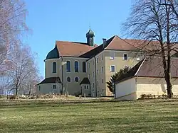 Die Klosterkirche befindet sich im Nordflügel der vierflügligen Anlage des Klosters. In der Mitte des Nordflügels ragt die Klosterkirche um drei Achsen hervor. Der Altarraum ist stark eingezogen und halbrund geschlossen. Um den Altarraum mit Stichkappengewölbe befindet sich der Sakristeiumgang. Dieser ist mit einem Pultdach gedeckt. Das Langhaus ist mit einem Satteldach gedeckt und besteht aus sechs Achsen mit Spiegelgewölbe. Eine zweigeschossige Empore befindet sich an der Südseite der Kirche.[2]