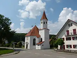 An der Westseite der Kirche ist ein Gedenkstein für Maria Kunigunde Koller angebracht. Der Stein wurde 1789 von ihren sieben Kindern gesetzt, von denen zwei Prämonstratenser in Steingaden und Schäftlarn, einer Augustinerchorherr in Rottenbuch sowie eine Klosterfrau im Dominikanerinnenkloster Altenhohenau am Inn waren.