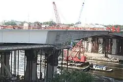 - ↑ Bridge milestone, halfway done. KSTP, ehemals im (nicht mehr online verfügbar); abgerufen am 20. August 2024 (englisch). (Seite nicht mehr abrufbar. Suche in Webarchiven)