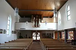 Die erste Orgel der Kirche stammte von der Firma Spaich, Rapperswil. Dieses Instrument wurde im Jahr 1925 umgebaut. Am 27. November 1977 wurde die heutige, von der Firma Späth erbaute Orgel eingeweiht.[12] Die Spiel- und Registertraktur des Schleifladen-Instruments ist rein mechanisch. Das Gehäuse ist aus Eiche, massiv. Siegfried Hildenbrand, Domorganist in St. Gallen, nahm die Projektberatung vor, die Intonation erfolgte durch Martin Pflüger.[13]