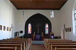 Die erste Innenausstattung wurde nach dem Bau der Kirche schrittweise ergänzt, da es an Geld mangelte. Im Jahr 1906 konnte diese erste Ausgestaltung der Kirche mit den Gemälden der Hl. Dreifaltigkeit am Hochaltar und dem Deckengemälde mit dem Abendmahl von Kunstmaler Josef Heimgartner aus Altdorf abgeschlossen werden.[11] Nach dem Zweiten Vatikanum wurde ein einfacher Holzaltar vor dem Hochaltar aufgestellt. Bei der Sanierung der Kirche im Jahr 1975 wurde der Innenraum neu gestaltet. Die Kirche erhielt zwei neue Chorfenster des Künstlers Johann Jakob Zemp. Volksaltar, Ambo, Tabernakel und Taufstein wurden der Liturgiereform entsprechend aufeinander ausgerichtet und bilden eine Einheit. Im Anbau von 1935 befinden sich Glasfenster von Jakob Häne, welche im Jahr 1958 eingebaut wurden und Szenen aus dem Leben des Patrons der Kirche, des hl. Antonius von Padua, darstellen.