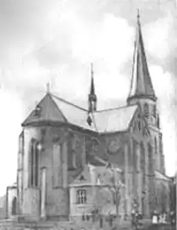 Bereits 1948 begann der Aufbau einer Notkirche,[11] die dann 1950 genutzt werden konnte. Dieses Gebäude ist heute der Pfarrsaal.