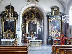Der Hauptaltar stellt den Kirchenpatron dar. Der rechte Seitenaltar stellt auf dem Altarbild (wohl von 1750) dar, wie Anna und Joachim, die Großeltern von Jesus, ihr Kind Maria unterrichten. Im Altarauszug wird der hl. Martin gezeigt.