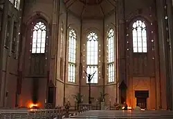 Am 13. Januar 1982 brannte die Kirche bis auf die Grundmauern ab; erhalten blieben nur die Außenmauern der Kapelle, der Taufkonche, der Sakristei, des Chorraums und des Turms. Den modernen Neubau auf historischem Grundriss entwarf Dieter Georg Baumewerd. Namhafte Künstler wie Theo Heiermann, Bert Gerresheim und Joachim Klos schufen die Ausstattung. Am 17. Januar 1987 wurde die wiederaufgebaute Kirche von Bischof Reinhard Lettmann geweiht.