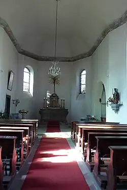 Der als Burgkapelle errichtete Bau im Stil des Spätbarocks hat einen polygonalen Chor und wird durch Fenster an seiner Längsfront in drei Achsen unterteilt. An der Südseite befindet sich das rundbogige Portal, das von einem bis in den Giebel reichenden Risalit gerahmt wird. Eine Statue des Kirchenpatrons ist in einer Giebelnische ausgestellt. Der Innenraum wird von einem Tonnengewölbe aus Holz überspannt. An der Empore findet sich das Wappen der Erbauerfamilie von der Heyden, genannt Belderbusch, mit der Jahreszahl 1783.