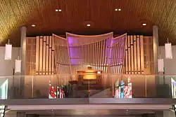 Das Instrument besitzt drei Manuale samt Pedal und ist auf die „französisch geprägte symphonisch-romantische Klangwelt ausgerichtet.“[15] Mit diesem Konzept unterscheidet sich die Orgel von den in der Region Zürich oft erbauten „Universalorgeln“ und auch von der 2014 neu erbauten Edskes-Orgel in der Nachbarpfarrei Maria Frieden Dübendorf, welche eine Prägung in der Tradition Arp Schnitgers aufweist. Die Orgel in Wallisellen besitzt 32 Register (davon zwei Transmissionen). Von den 2004 Pfeifen bestehen 1920 aus einer Zinn/Blei-Legierung, 84 Pfeifen sind aus Holz gebaut. Die Traktur ist mechanisch, die Registratur mechanisch und verfügt über eine zusätzliche elektronische Setzeranlage (Doppelregistratur). Eine Besonderheit sind die fächerförmig angeordneten Prospektpfeifen. Diese Anordnung orientiert sich an der Architektur der Kirche. So nimmt der Orgelprospekt die Gestaltung der Chorwand auf, die dem Corpus Christi folgt. Mittels Beleuchtung kann der Orgelprospekt in den liturgischen Farben beleuchtet werden.[16] Die Disposition lautet:[17]