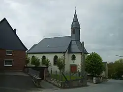 Der Vorgängerbau wurde 1625 durch den Landkomtur des Deutschen Ordens errichtet. Die heutige Kapelle ist ein kleiner, verputzter Saal mit einem Chorpolygon und einem Westturm. Er wurde 1923 von Franz Aßhoff gebaut. Die Fenstereinfassungen und die Eckquaderung sind in Sandstein gehalten.