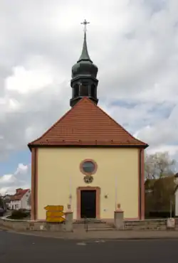 | Kirche mit Dachreiter und Sakristeianbau | |