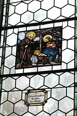 Auf zwei weiteren Scheiben sind die Verkündigung und die Geburt Jesu dargestellt, die der Werkstatt des in Dachau ansässigen Glasmalers Syrius Eberle (1887–1967) zugeschrieben werden. Aus seiner Werkstatt stammen vermutlich auch die Scheiben mit der Darstellung der Flucht nach Ägypten und einer Pietà im Langhaus.