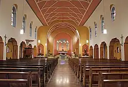 Das Innere der Kirche wird von einem Tonnengewölbe mit netzartigen Strukturen bestimmt, das seitlich in einen flachen Deckenabschnitt übergeht, der wiederum in eine Hohlkehle übergeht, die die Verbindung zu den Seitenwänden des Kirchenschiffes darstellt. Im Chor, der auch über ein Tonnengewölbe verfügt, befinden sich ebenfalls netzartige Strukturen. Abgeschlossen wird der Chor im Osten durch eine Apsis.