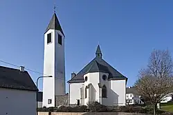 Zwischen 1922 und 1923 wurde eine neue, größere Kirche nach Plänen des Trierer Architekten Wilhelm Buchholz im Stil der Reformarchitektur errichtet. Die Einweihung des dreischiffigen Gotteshauses fand am 27. Oktober 1924 statt. In folge des Zweiten Weltkriegs wurde die Kirche am 27. Dezember 1944 bis auf die Umfassungsmauern zerstört.