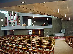 Von der US-Armee konnten zwei alte Militärbaracken erworben werden. Diese wurden an ihrem alten Standort abgetragen und als Kirche wiederaufgebaut. Da Baumaterialien knapp waren, spendete jedes Gemeindemitglied, was es übrig hatte. Für die Fenster wurde Altglas gesammelt, nach Farben sortiert und ins Sauerland gebracht. Dort wurde es eingeschmolzen und zu Fenstern verarbeitet.