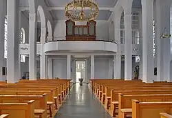 Die in den Jahren 1856 bis 1857 von Konrad Albiez aus Waldshut erbaute Orgel auf der Empore im hinteren Teil der Kirche arbeitet mit Schleiflade und verfügt über eine mechanische Spiel- und Registertraktur. Das Instrument mit einem Manual und Pedal verfügt über 16 Register.[6] Das Instrument mit schlichtem symmetrischen Prospekt wurde 1980 einer Renovierung unterzogen.