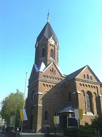 Die Kirche ist eine Saalkirche in Backstein mit Satteldach. Sie besitzt eine kreisförmige Apsis. Der Bau ist klassizistisch geprägt. Der 1886 entstandene neuromanische Turm, geplant und umgesetzt durch den Kölner Architekten Theodor Kremer, ist achteckig und besitzt ein verschiefertes Faltdach.