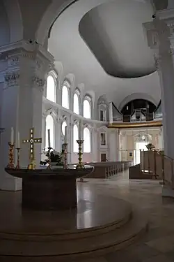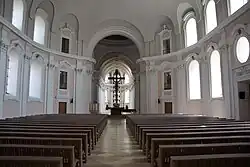 Die neue Einrichtung wurde schlicht und nicht historisierend gestaltet; den Altar rückte man vom Ende des Chores in die Vierung.[6]