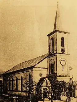 Der Vorgängerbau der heutigen Kirche entstand in den Jahren 1845 bis 1848 nach Plänen des Trierer Regierungsbaurates Hoff, der gleichzeitig im saarländischen Eisenbahnbau tätig war. Die Bauaufsicht vor Ort oblag dem Saarbrücker Kommunalbaumeister Carl Benzel. Die Gestaltung des spätklassizistischen Sakralbaues wies architektonische Parallelen zum Rundbogenstil der kurz zuvor errichteten Dillinger Pfarrkirche St. Johann auf.
