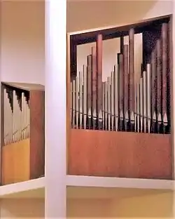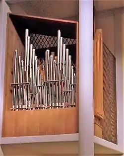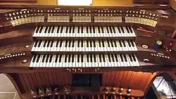 • Spielhilfen: 2 freie Kombinationen, 1 freie Pedalkombination, Tutti, Crescendowalze, Walze ab, Zungeneinzelabsteller