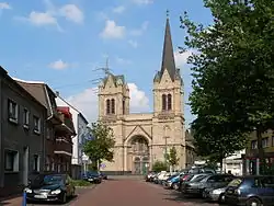 Wegen ihrer beiden stattlichen Türme wurde die Kirche auch „Laarer Dom“ genannt. Nach Schäden im Zweiten Weltkrieg blieb der Nordturm ohne Helm, und das ursprünglich basilikale Langhaus wurde vereinfacht und mit niedrigerem Mittelschiff wiederaufgebaut.