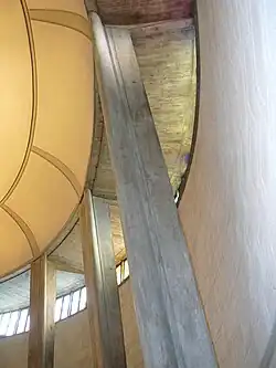 Fritz Metzger gestaltete den Eingangsbereich sowie den Gemeinde- und den Altarraum als differenzierte Einheit. Der einzelne sollte so schrittweise in die Gemeinschaft der Gläubigen und hin zum Geschehen am Altar geführt werden. Der Eingang ist schlicht gestaltet. Durch die beiden Anbauten auf der Seite des Hauptraumes wird eine basilikale Struktur angesprochen. Der Hauptraum besteht aus einer ovalen Rotunde, die mit einer flachen Schalenkuppel abgeschlossen wird. Mit den neuen Baustoffen und Konstruktionsmöglichkeiten schuf Ingenieur Emil Schubiger die wie aus einem Guss geformte Kuppel. Diese wird von konzentrisch nach innen geneigten Stützen getragen, die sich mit ihrem Fuss gegen den Sockel der Ringmauer anstemmen. Die Wände sind mit Kunststeinen aus Kalk verkleidet und bestimmen zusammen mit den Sichtbetonelementen das Innere der Kirche. Der Altarraum ist etwa doppelt so breit wie tief und mit einem flachen Korbbogen gewölbt.[21]