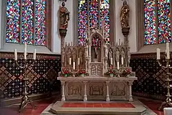 Über dem Altar befindet sich das Altarkreuz, das vom Gewölbe herabhängt. Es wird einer rheinischen Schule um 1520 zugeschrieben und war ursprünglich ein Vortragekreuz.