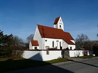 Die spätgotische Saalkirche wurde Mitte des 15. Jahrhunderts erbaut und wurde im 18. Jahrhundert und um 1890 verändert. Sie besteht aus einem Langhaus, einem eingezogenen Chor im Nordosten mit Fünfachtelschluss und einem Chorflankenturm an der Nordwestwand des Chors. Der Innenraum des Langhauses ist mit einer Flachdecke überspannt, der des Chors mit einem Netzgewölbe. Die Kirchenausstattung stammt von 1965/67. Auf dem Antependium ist Felicitas und ihre Söhne dargestellt.