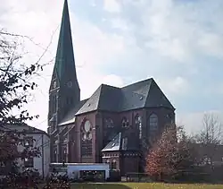 Die neugotische Backsteinbasilika mit einer Apsis im 5/8-Schluss wurde 1891/92 nach einem Entwurf von Hermann Wielers errichtet. Das Querhaus und der Westturm unter einem Spitzhelm ergänzen die Anlage.