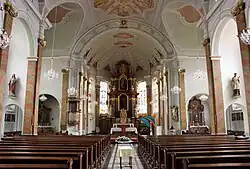 Bemerkenswert im Inneren der Kirche ist der von den Gebrüdern Port (Münstermaifeld) in den Jahren 1914/1915 erbaute Hochaltar, der Teile aus dem Vorgängerbau beinhaltet. Die Kanzel sowie die Seitenaltäre stammen noch komplett aus dem Vorgängerbau.[2]