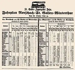 - Rorschach Hafen–Rorschach (Spitzkehre)–St. Gallen am 25. Oktober 1856