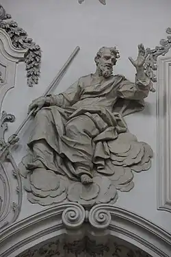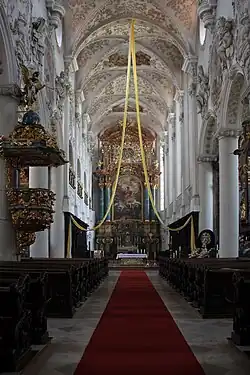 Meisterwerke der barocken Stuckierung sind die zwölf um 1720 von Zimmermann geschaffenen Apostel. Sie sind über den Arkadenbögen auf Wolkenbänken schwebend dargestellt und zeichnen sich durch lebendige, individuelle Charakterisierung aus.